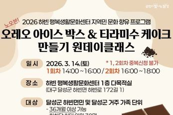 뉴스투게더 김인숙 기자 | (재)달성문화재단(이사장 최재훈)이 운영하는 하빈 행복생활문화센터는 3월 14일부터 본격적인 운영에 들어간다고 밝혔다. 하빈 행복생활문화센터는 지난해 주민 의견을 반영한 맞춤형 프로그램과 체계적인 대관 운영으로 호평을 받았다. 특히 문화시설 이용 기회가 상대적으로 적은 하빈면 주민을 위해 ‘우선 접수제’를 도입하는 등 지역 주민 중심의 운영 체계를 마련했다. 달성문화재단은 올해도 주민 수요를 반영한 문화예술 프로그램을 운영하고, 생활문화동호회 활동과 공간 대관 지원을 통해 지역 공동체의 소통 기능을 강화할 계획이다. 운영 첫 프로그램으로는 원데이 클래스 ‘오레오&티라미수 박스 케이크 만들기’가 진행된다. 해당 프로그램은 3월 5일부터 6일까지 하빈면민을 대상으로 우선 접수를 실시한 후 달성군민에게 참여 기회를 제공한다. 이와 함께 4월부터는 하빈면 주민을 위한 심화 공예 프로그램과 농한기 특별 프로그램 등이 운영되며, 하반기 주민 참여 프로그램 또한 순차적으로 마련될 예정이다. 모든 프로그램은 무료로 진행되며, 자세한 사항은 달성문화재단 누리집 또는 전화로 확
