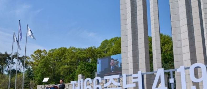 뉴스투게더 김태훈 기자 | 이재명 대통령과 김혜경 여사는 19일 오전 10시, 서울특별시 강북구에 위치한 국립4·19민주묘지에서 거행된 ‘제66주년 4‧19혁명 기념식’에 참석해 66년 전 이 땅의 민주주의를 수호하기 위해 불의에 항거한 시민과 학생들의 정신을 기억하고, 희생자 유족 등을 위로하는 시간을 가졌다. 국민주권정부 출범 후 처음 맞는 이번 기념식은 ‘작은 불빛이 모여 하나의 길로’라는 슬로건 아래 개최됐다. ‘작은불빛’은 국민주권을, ‘하나의 길’은 국민통합을 의미한다. 기념식에는 4‧19혁명 유공자 및 유족, 학생, 각계 대표 등 1,000여 명이 참석해 4‧19혁명 희생자를 추모하고 감사하는 기회를 가졌다. 4‧19혁명은, 1960년 4월, 학생과 시민이 중심이 되어 독재 권력에 항거하여 민주주의를 수호한 혁명으로, 대한민국 민주주의 발전의 중요한 전환점이 됐다. 2023년 5월 18일 4‧19혁명 관련 기록물 1,019건이 유네스코 세계기록유산으로 등재 결정됐다. 이재명 대통령은 먼저 국립4‧19민주묘지 내 사월학생혁명기념탑에서 4‧19혁명 단체장, 당시 시위에 참가한 고등학교와 대학교에 재학