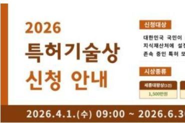지식재산처, 대한민국 발명 속 '숨은 진주' 찾는다... '2026년 특허기술상' 접수 시작