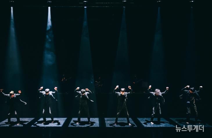 공연이 시작되자 검은 슈트를 입은 7명의 남성 무용수가 강렬한 몸짓으로 시선을 집중시켰고, 이어 3인조 밴드와 1명의 소리꾼이 현대식으로 편곡한 품바 타령을 애절하고 압도적인 사운드로 뿜어내며 관객의 마음을 사로잡았다.