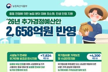 농림축산식품부, 중동 전쟁에 의한 농업 분야 피해 최소화, 민생 안정을 위한 추경 예산안 2,658억원 편성