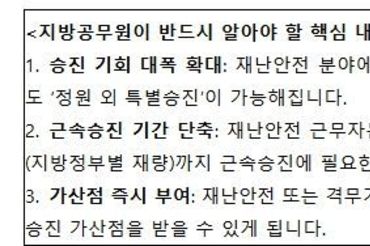 행정안전부, 재난안전·민원 현장 지방공무원, 승진 빨라지고 인센티브 늘어난다
