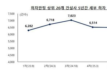 국토교통부, '26년 상반기 공동주택 하자 판정 상위 20개 건설사 명단 공개