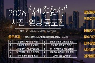 세종시문화관광재단, ‘2026 세종감성 사진영상 공모전’ 개최