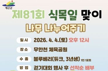예산군, 제81회 식목일 기념 나무심기·나무 나누어주기 행사 개최