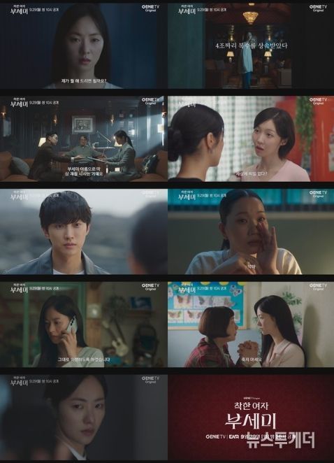 오는 9월 29일(월) 밤 10시 처음 공개되는 지니 TV 오리지널 ‘착한 여자 부세미’(연출 박유영/ 극본 현규리/ 기획 KT스튜디오지니/ 제작 크로스픽쳐스, 트리스튜디오)에서 메인 예고 영상을 공개, 재벌 회장 가성호(문성근 분)와의 약속을 이행하기 위한 김영란(전여빈 분)의 복수극을 예고하고 있다.
