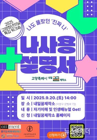 ‘2025 고양청년의 날’축제는 9월 20일 토요일 오후 1시부터 저녁 6시까지 진행되며,‘나 사용 설명서’워크숍은 내일꿈제작소 A동 4층 강당에서 오후 2시부터 4시까지 진행된다.