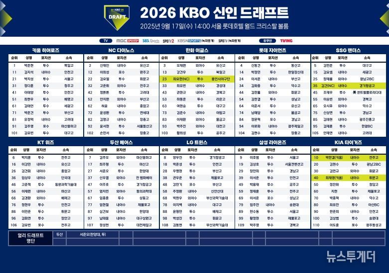 고교 92 / 대학 16 (얼리드래프트 1) / 기타 2