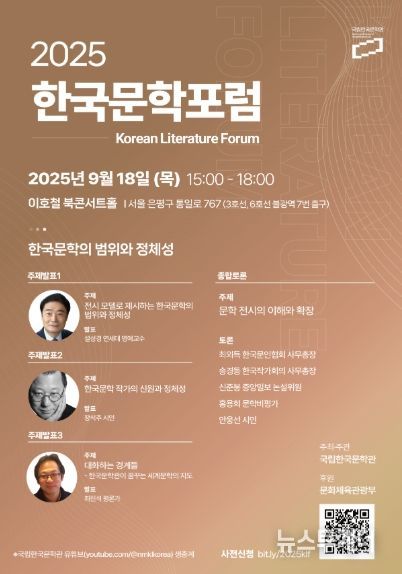 뉴스투게더 윤종우 기자 | 문화체육관광부는 국립한국문학관과 함께 9월 18일(목) 오후 3시, 이호철 북콘서트홀(서울 은평구)에서 ‘2025 한국문학포럼’을 개최한다.