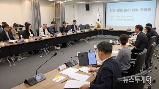 뉴스투게더 윤종우 기자 | 문화체육관광부 최휘영 장관은 9월 19일 오후, 국립현대미술관 서울관에서 ‘웹툰업계 간담회’를 열어 웹툰 업계 현장 전문가들의 의견을 청취하고 웹툰 산업의 지속 가능한 발전을 위한 지원 방안을 모색했다. 이번 간담회에는 이현세 작가 등 창작자를 비롯해 주요 협회·단체, 플랫폼·제작사 관계자 등이 참석했다.