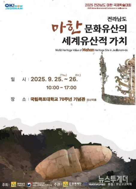 뉴스투게더 윤종우 기자 | 국가유산청 국립문화유산연구원 국립나주문화유산연구소는 전라남도와 함께 9월 25일부터 26일까지 국립목포대학교 70주년 기념관(전남 무안군)에서 '전라남도 마한 문화유산의 세계유산적 가치'를 주제로 국제학술대회를 개최한다.