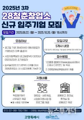 뉴스투게더 이현진 기자 | 고양특례시가 조성하고 고양산업진흥원이 운영하는 ‘28청춘창업소’가 10월 20일까지 3차 신규 입주기업을 모집한다.