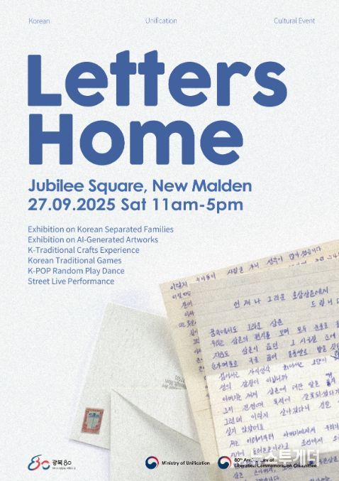 뉴스투게더 윤종우 기자 | 통일부는 9월 27일, 영국 최대 한인 밀집 지역인 뉴몰든에서 ‘Letters Home’(집으로 보내는 편지)을 주제로 한 재외동포 통일문화행사를 개최한다.