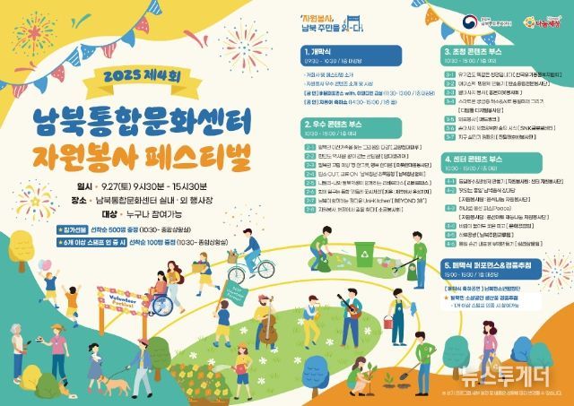 뉴스투게더 윤종우 기자 | 통일부 남북통합문화센터(서울시 강서구 소재)는 9월 27일, 지역사회와 함께하는 '자원봉사 페스티벌'을 개최한다.