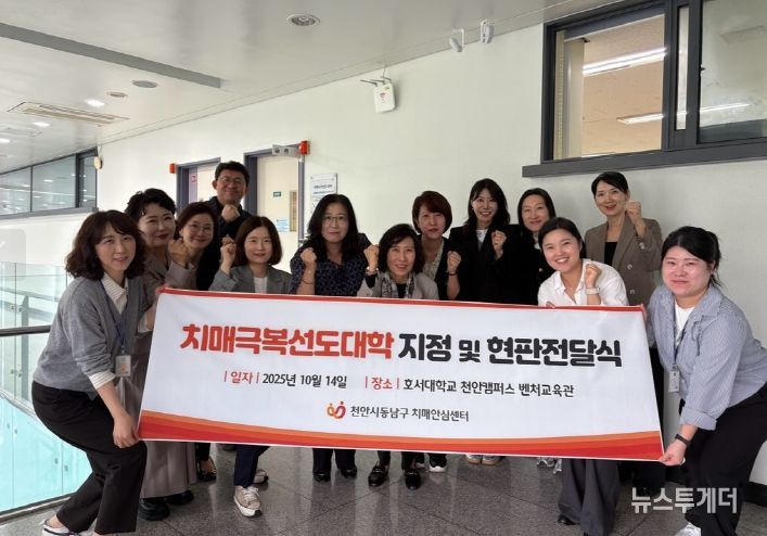 뉴스투게더 김인숙 기자 | 천안시는 14일 치매극복선도대학으로 신규 지정된 호서대학교 글로벌융합대학에 현판을 전달했다고 밝혔다.
