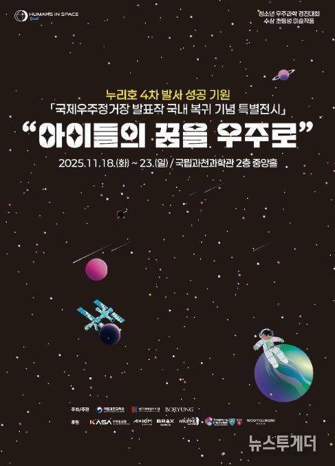 뉴스투게더 김인숙 기자 | 과학기술정보통신부 국립과천과학관은 11월 27일로 예정된 누리호 4차 발사 성공을 기원하며, 11월 18일부터 23일까지 다양한 전시와 체험으로 구성된 특별 프로그램을 개최한다. 이번 행사는 국제우주정거장(ISS)에 소개된 초등생 미술 작품을 국내 최초로 선보이고, 실물 크기의 누리호 기립 작동을 포함한 다채로운 우주과학 체험을 통해 국민과 함께 발사 성공을 응원하는 취지로 마련됐다.