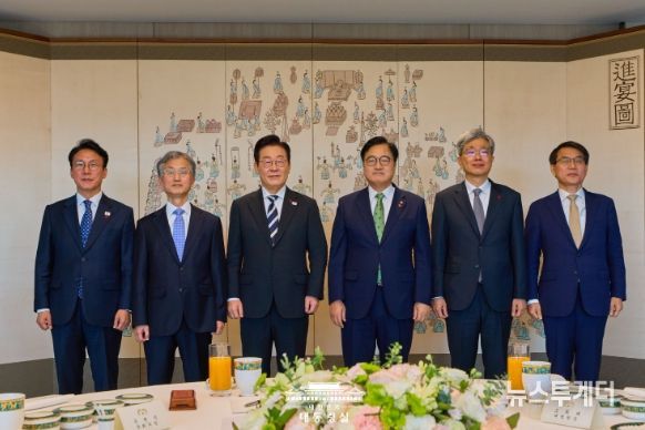 뉴스투게더 김태훈 기자 | 3일 이재명 대통령과 5부 요인의 오찬은 1시간 40분 동안 화기애애한 분위기 속에 진행됐다.