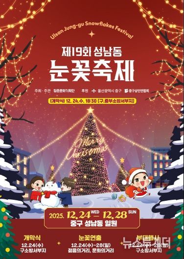 한편, 중구는 성남동 눈꽃축제와 연계해 옛 울산초등학교 앞~보세거리 입구 구간과 젊음의거리 등에 대형 성탄절 나무(크리스마스 트리), 종 모양 조형물, 2026 숫자 조형물 등을 설치해 운영하며 더욱 낭만적인 분위기를 연출할 계획이다.