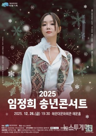 뉴스투게더 김인숙 기자 | 해운대문화회관은 오는 12월 26일 오후 7시 30분, 해운대문화회관 해운홀에서 송년 특별기획 공연인 ‘2025 임정희 송년콘서트’를 개최한다.