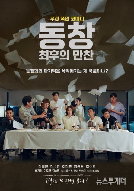 한편, 이번에 공개된 메인 포스터는 마치 레오나르도 다빈치의 명작 ‘최후의 만찬’을 떠올리게 하며 눈길을 사로잡는다. 흩날리는 종이와 함께 놀란 얼굴로 테이블에 둘러앉은 동창들의 모습이 호기심을 자극한다.