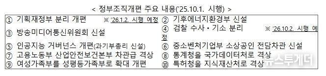 먼저, 정부조직개편은 특정 부처에 집중된 기능과 권한을 재배치하고, 기후 변화, AI 대전환 등 미래 위기에 선제적으로 대응하기 위해 기획재정부 분리 개편, 기후에너지환경부 신설 등을 중심으로 추진했다.