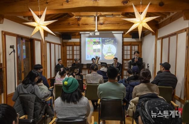 한옥숙박체험관 마당과 한옥11동에서는 캐럴 등 공연이 열려 겨울의 추위를 따뜻하게 채웠다. 20일에는 지역에서 활동하는 ‘모담어린이국악합창단’, 지역 내 아마추어 합주단 ‘포디움 윈드오케스트라’, 전문공연단체‘The울림’의 앙상블 무대가 열렸고, 21일에는 보듬우리협동조합의 클라리넷 독주가 열려 발달장애인과 비장애인이 음악으로 하나 되며 연말의 감동을 전했다.