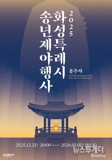 뉴스투게더 김인숙 기자 | (재)화성시문화관광재단은 시민과 함께 2025년을 마무리하고 2026년을 맞이하는 '2025 화성특례시 송년 제야행사'를 오는 12월 31일 수요일 오후 8시부터 용주사 일원에서 개최한다.