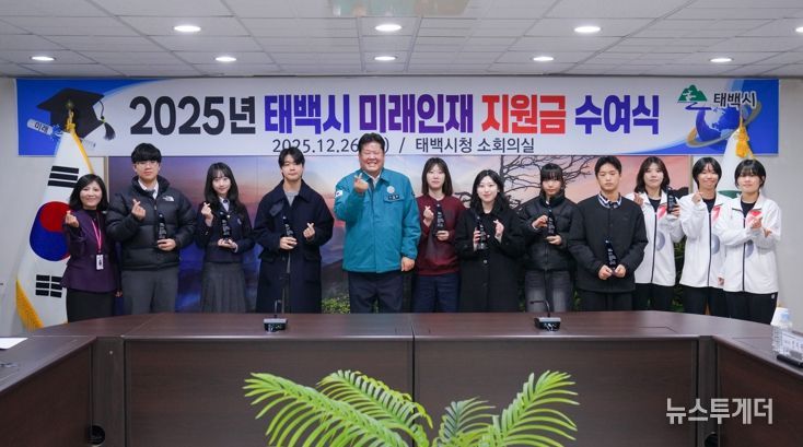 뉴스투게더 장영주 기자 | 태백시 지난 26일 시청 소회의실에서 2025년 태백시 미래인재 신규 선발자와 그 가족 등이 참석한 가운데 미래인재 지원금 및 인증패 수여식을 개최했다.