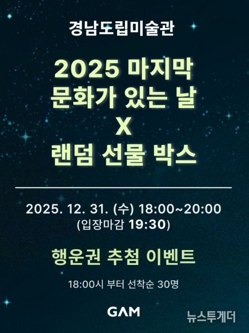 뉴스투게더 김인숙 기자 | 경남도립미술관은 12월 31일 ‘문화가 있는 날’을 맞이해 연말을 함께 즐길 수 있는 특별 이벤트를 마련한다고 밝혔다.