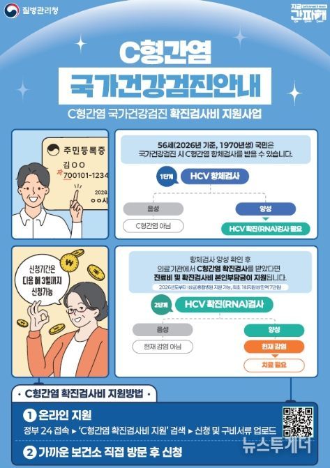 뉴스투게더 김인숙 기자 | 경상남도는 2026년부터 국가건강검진 결과 C형간염 항체 양성 판정을 받은 56세 도민(2026년 기준 1970년생)을 대상으로 시행하는 확진 검사비 지원사업을 모든 의료기관으로 확대한다고 밝혔다.