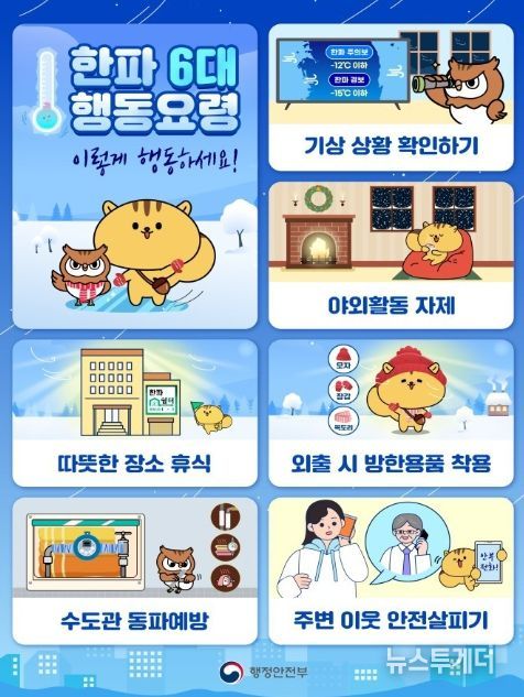 이에, 한파에 취약한 어르신 등을 대상으로 안부 확인을 확대하는 등 밀착 관리하고, 특보 시에는 주말·야간 한파쉼터 연장 운영 및 국민행동요령 홍보도 적극 실시해 줄 것을 요청했다.