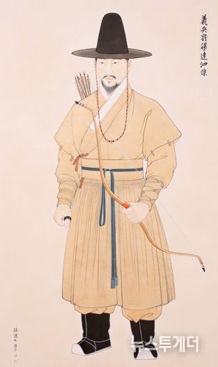 특히, 무과 중시(中試)에 급제하고 뛰어난 활솜씨를 가졌다는 의병장의 기록에 기반해 손에 활을 움켜쥔 채 화살통을 메고 있는 가로 90cm, 세로 160cm 입상 영정을 내놓았다.