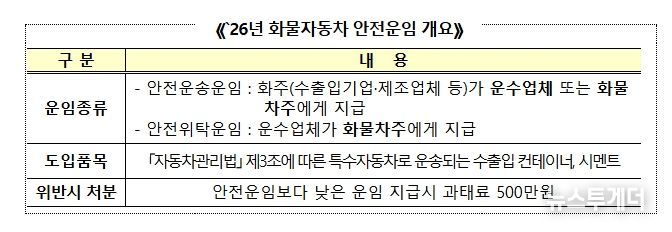 뉴스투게더 김성연 기자 | 국토교통부는 ’26년에 적용되는 화물자동차 안전운임을 1월 중에 확정하여 고시할 예정이라고 밝혔다.