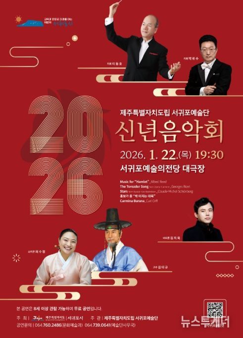 뉴스투게더 김인숙 기자 | 서귀포시는 1월 22일 19시 30분 서귀포예술의전당 대극장에서 ‘제주특별자치도립 서귀포예술단 2026 신년음악회’를 개최한다.
