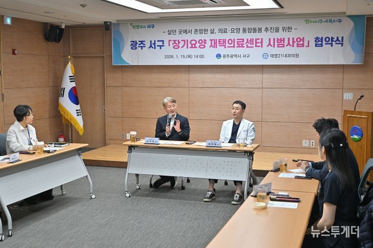 뉴스투게더 김인숙 기자 | 광주광역시 서구가 거동불편 어르신의 재가생활 지원에 나선다. 서구는 15일 서구청 이음홀에서 태영21내과의원(대표 양태영)과 방문의료 지원체계 강화를 위한 ‘장기요양 재택의료센터 시범사업 협약식’을 개최했다.