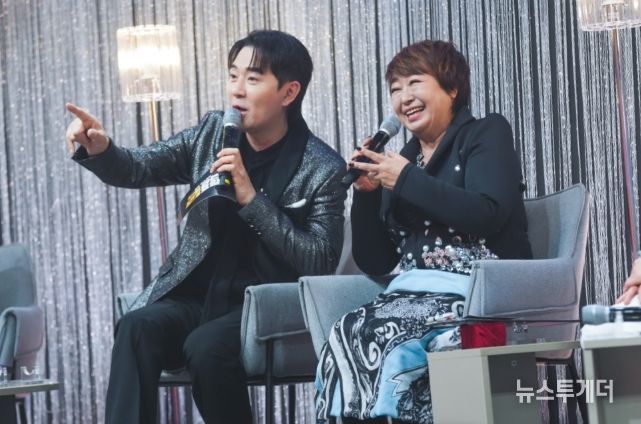 이어진 무대에서는 천록담의 파격 변신이 예고된다. 혜은이의 '진짜 진짜 좋아해'를 선곡한 천록담은 "44년 인생 최초로 애교를 장착했다. 다소 불편하신 분들은 눈을 감아주셔도 좋다"라며 스스로도 낯선 도전에 나선다. 아장아장 스텝과 과감한 엔딩 포즈로 채워진 무대는 현장에 환호와 당혹이 교차하는 극명한 반응을 불러일으킨다.
