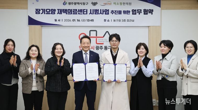 뉴스투게더 김인숙 기자 | 광주 동구는 16일 미소필한의원(원장 박태희)과 주민 건강증진 및 의료서비스 접근성 강화를 위한 ‘협업형 장기요양 재택의료센터 시범사업’ 추진 업무협약을 체결했다고 밝혔다.