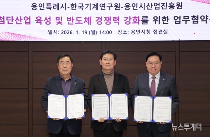 뉴스투게더 이현진 기자 | 용인특례시는 19일 시청 접견실에서 한국기계연구원(KIMM), 용인시산업진흥원과 ‘첨단산업 육성 및 반도체 경쟁력 강화를 위한 업무협약’을 체결했다.