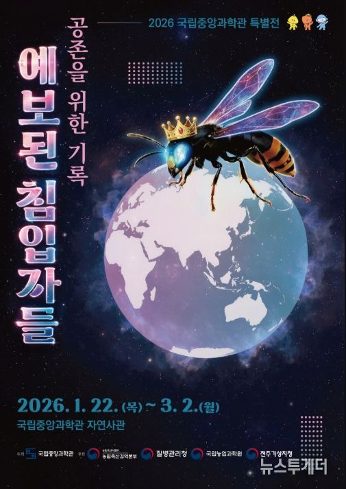 뉴스투게더 김인숙 기자 | 미래의 꿈을 만드는 과학기술 문화 이음터(플랫폼) 과학기술정보통신부 국립중앙과학관은 1월 22일부터 3월 2일까지 자연사 관에서 인공지능(AI) 기술을 활용해 다양한 기후변화에 따른 해충의 위협과 슬기로운 대응을 다룬 해충특별전 ‘2026년 예보된 침입자들: 공존을 위한 기록’을 개최한다고 밝혔다.