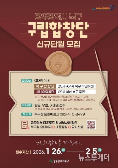 뉴스투게더 김인숙 기자 | 광주광역시 북구가 아름다운 목소리로 주민들과 소통하는 구립합창단 신규 단원을 모집한다고 21일 밝혔다.