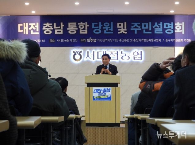 뉴스투게더 안상호 기자 | 더불어민주당 대전·충남통합 및 충청지역발전특별위원회 대전 중구 추진단이 대전·충남통합을 주제로 22일 주민설명회를 개최했다.