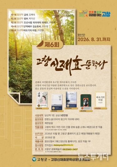 한편, 제6회 고창신재효문학상 공모전은 8월 31일까지 이메일로 접수 받으며, 당선작은 10월 중 발표될 예정이다.