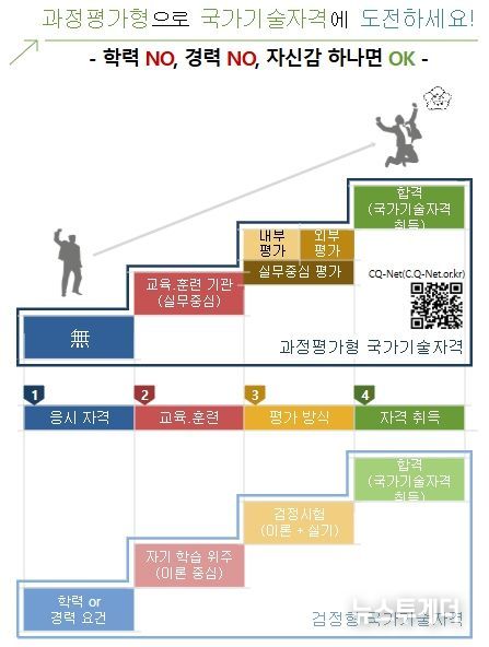 또한, 교육·훈련을 통해 실무 역량을 키워나가는 만큼 별도의 응시자격을 먼저 요구하지 않아 경력이 없는 사람이나 비전공자도 산업기사 이상 자격에 도전할 수 있다. 과정평가형 국가기술자격을 취득하기 위해서는 직업계고, 대학, 폴리텍 등 교육기관에서 개설되는 과정에 참여하거나, 직업훈련기관에서 국민내일배움카드로 교육·훈련을 신청하여 수강할 수 있다.