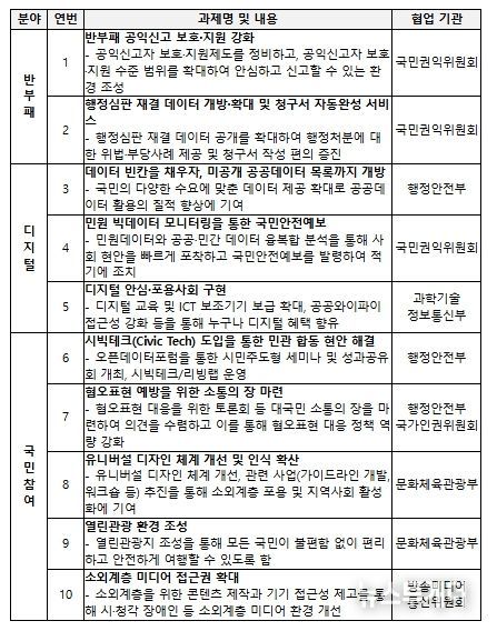 특히, 국민참여를 통한 사회문제 해결, 디지털·AI 기술을 활용한 행정 서비스 개선, 공익신고 보호 강화 등 국민 체감도가 높은 핵심 분야에 역량을 집중한다.