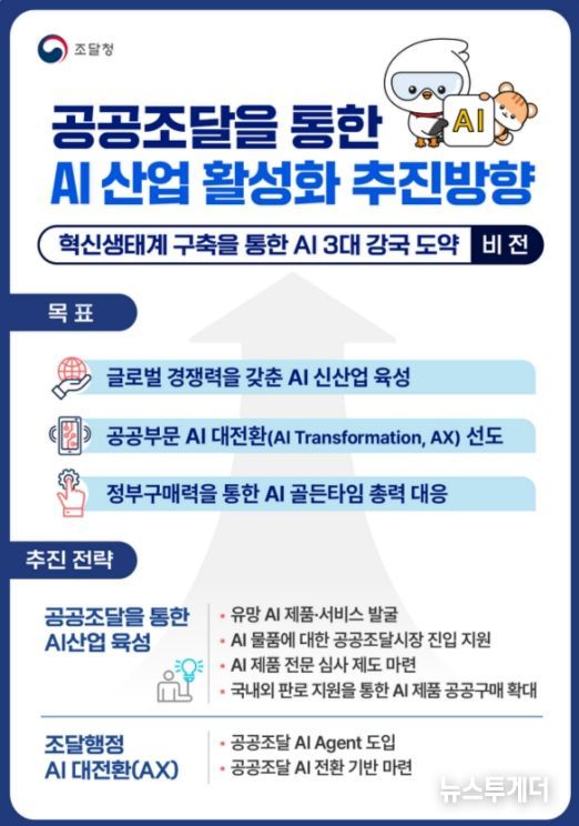 뉴스투게더 김태훈 기자 | 조달청은 4일 경제장관회의를 통해 '공공조달을 통한 AI 산업 활성화 선도 방안'을 관계부처 합동으로 발표했다.