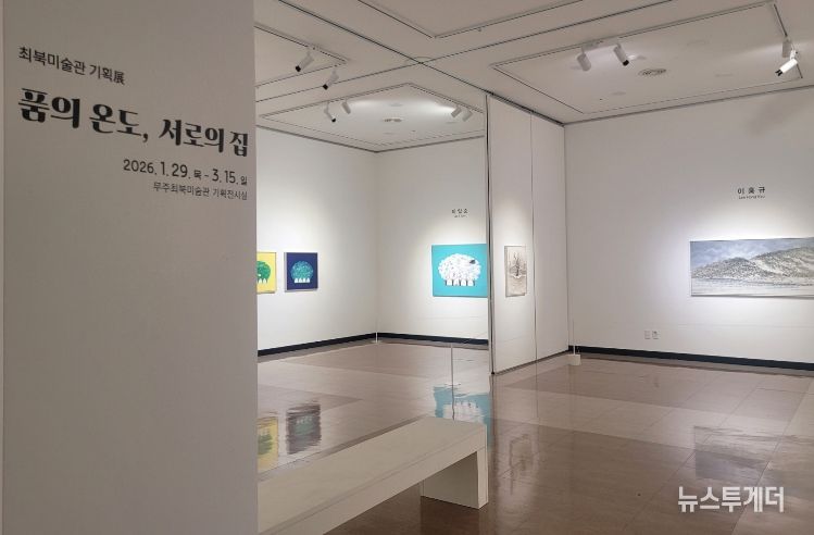 뉴스투게더 김인숙 기자 | 무주군 최북미술관(공립 1종 미술관)이 야심 차게 준비한 올해 첫 전시, ‘품의 온도, 서로의 집’ 展이 관람객들을 손짓하고 있다.