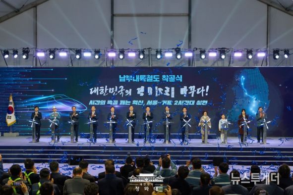 뉴스투게더 김태훈 기자 | 이재명 대통령은 6일 "남부내륙철도는 단순히 선로 하나를 놓는 사업이 아니다"라며 "수도권에 모든 것이 집중된 '일극 체제'에서 벗어나 사람과 지역을 잇고, 기회를 연결하며, 지역의 성장동력을 만들어내는 국토 대전환의 시작"이라고 말했다.