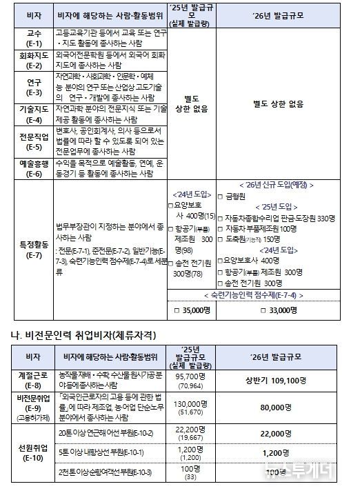 이러한 분석 결과를 토대로, 법무부는 2026년 숙련기능인력(E-7-4) 비자의 연간 발급규모를 3만 3천 명으로 조정했다. 이는 최근 비자 전환 추이, 산업 수요, 관계부처 의견을 종합적으로 고려하여 전년(3만 5천 명)보다 소폭 하향 조정한 규모이다.