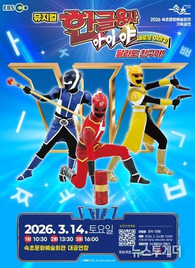 뉴스투게더 장영주 기자 | 속초시는 3월 14일 10시 30분, 13시 30분, 16시 하루 3회 속초문화예술회관에서 뮤지컬‘한글용사 아이야 새로운 이야기-달라도 친구야’를 선보인다.