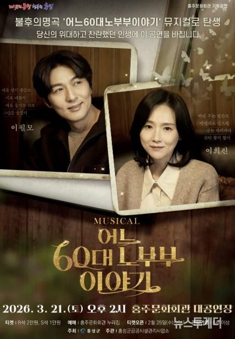 뉴스투게더 김인숙 기자 | 홍성군 홍주문화회관은 내달 21일 오후 2시, 중장년층을 넘어 모든 세대가 공감할 수 있는 따뜻한 가족 이야기를 그려낸 뮤지컬 ‘어느 60대 노부부 이야기’를 무대에 올린다.